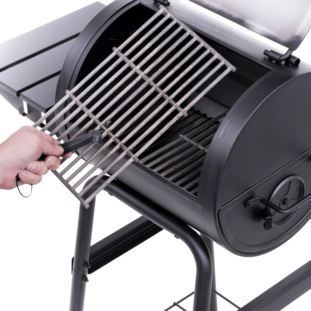 Slide out charcoal drawer allows for easy fuel access and clean-up