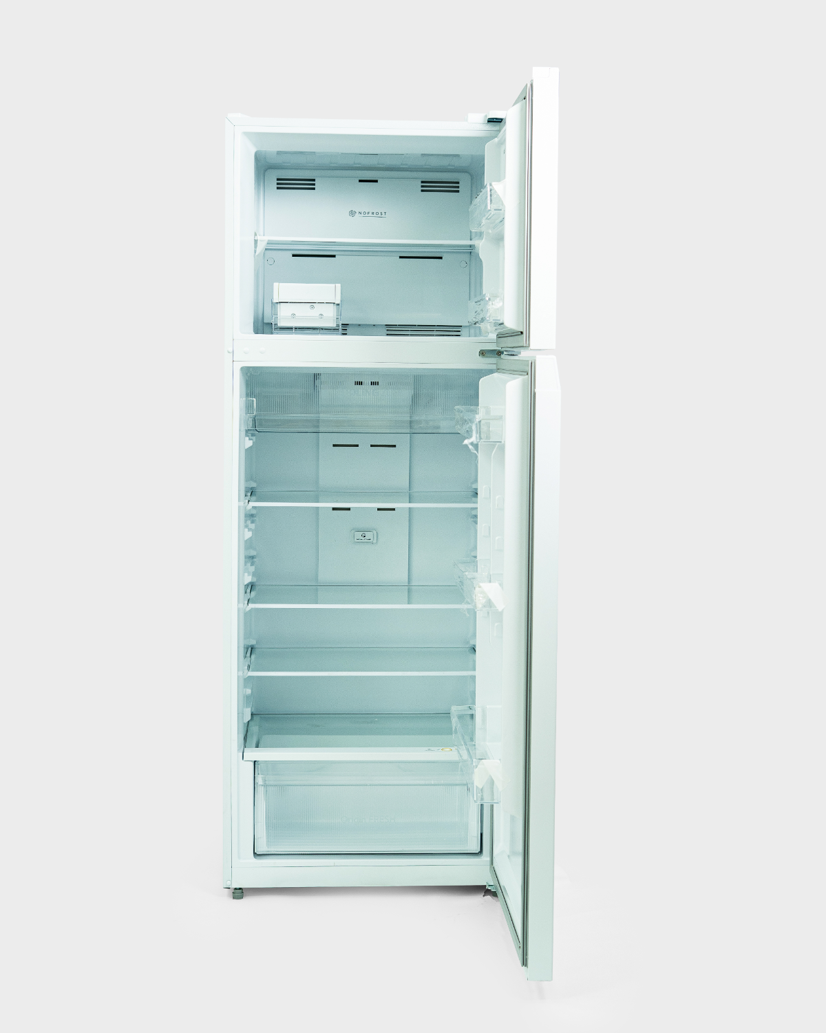 Freezer Compartment: 1 glass shelf, 2 door bins, multi-directional air flow vents